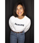 Sweat shirt blanc « Egalité » 100% coton. Fabriqué à Paris, dans le marais, en circuits courts et responsables. Un hymne au vivre-ensemble, un doux clin d’œil à la devise républicaine. Sweat shirt mixte coupe droite à encolure ronde qui s’adapte à toutes les silhouettes. Message en velours parfaitement résistant au lavage.