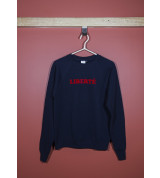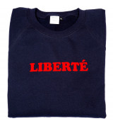 Sweat shirt bleu navy « Liberté » 100% coton. Fabriqué à Paris, dans le marais, en circuits courts et responsables. Un hymne au vivre-ensemble, un doux clin d’œil à la devise républicaine. Sweat shirt mixte coupe droite à encolure ronde qui s’adapte à toutes les silhouettes. Message en velours parfaitement résistant au lavage.