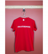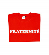 T-shirt rouge « Fraternité » 100% coton. Fabriqué à Paris, dans le marais, en circuits courts et responsables. Un hymne au vivre-ensemble, un doux clin d’œil à la devise républicaine. T-shirt mixte coupe droite à encolure ronde qui s’adapte à toutes les silhouettes. Message en velours parfaitement résistant au lavage.