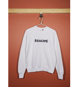 Sweat shirt blanc « Egalité » 100% coton. Fabriqué à Paris, dans le marais, en circuits courts et responsables. Un hymne au vivre-ensemble, un doux clin d’œil à la devise républicaine. Sweat shirt mixte coupe droite à encolure ronde qui s’adapte à toutes les silhouettes. Message en velours parfaitement résistant au lavage.